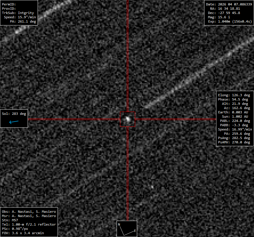 Orion Integrity in quel momento si trovava a circa 450.000 chilometri dal nostro pianeta, in prossimità del punto più lontano dalla Terra, subito dopo l’uscita dal cono d’ombra lunare. Per il GAL Hassin rappresenta l’oggetto artificiale più lontano osservato finora.